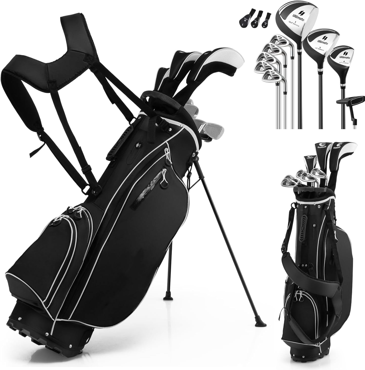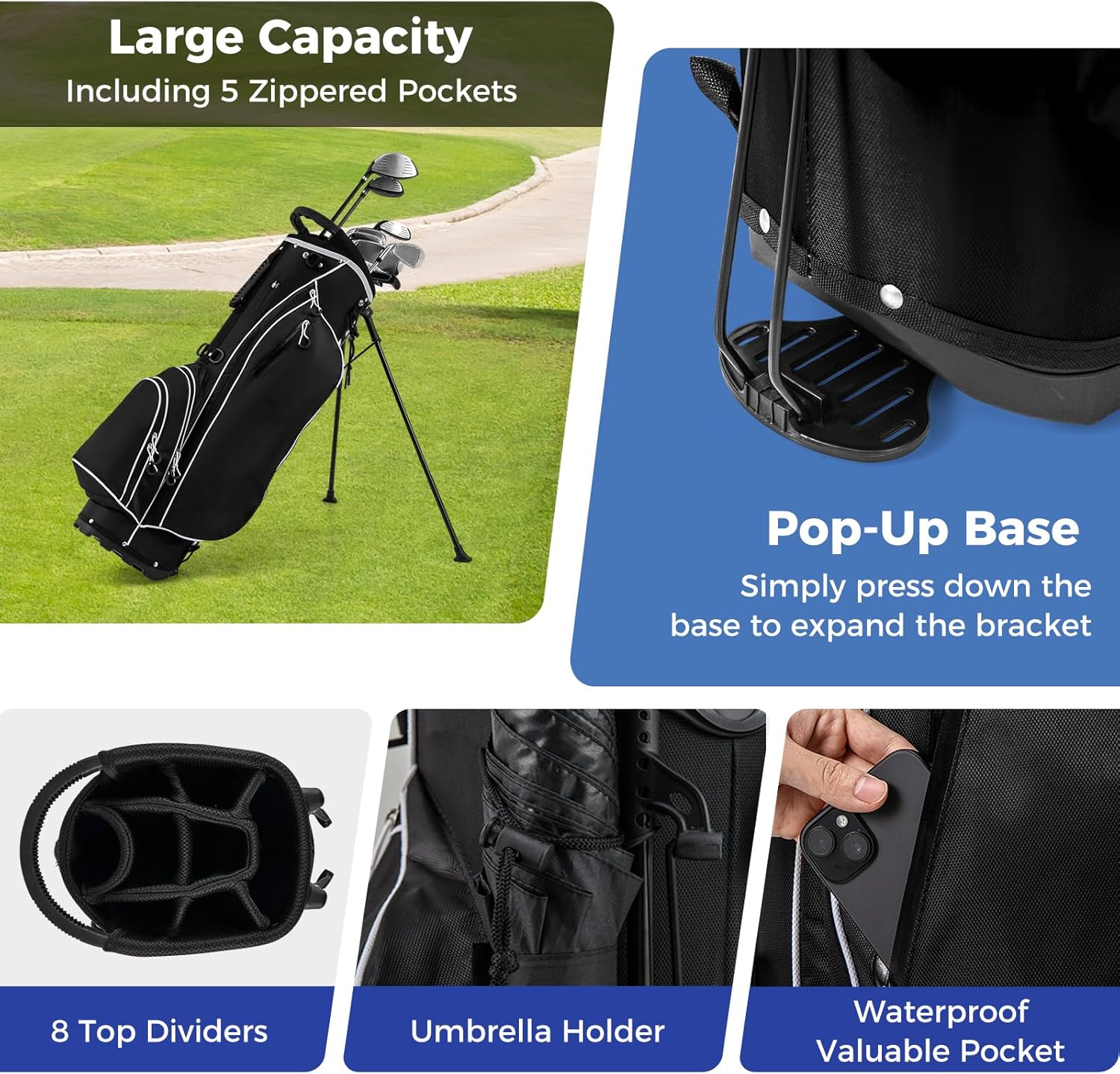 ✔LIGHTWEIGHT AND EASY TO CARRY- The golf set comes with a golf stand pocket for easy storage and transport. The golf stand bag has a rain cover to protect the club from getting wet, and the wide comfortable strap can reduce the pressure on the shoulders and back, so that you will not be tired for a long time.