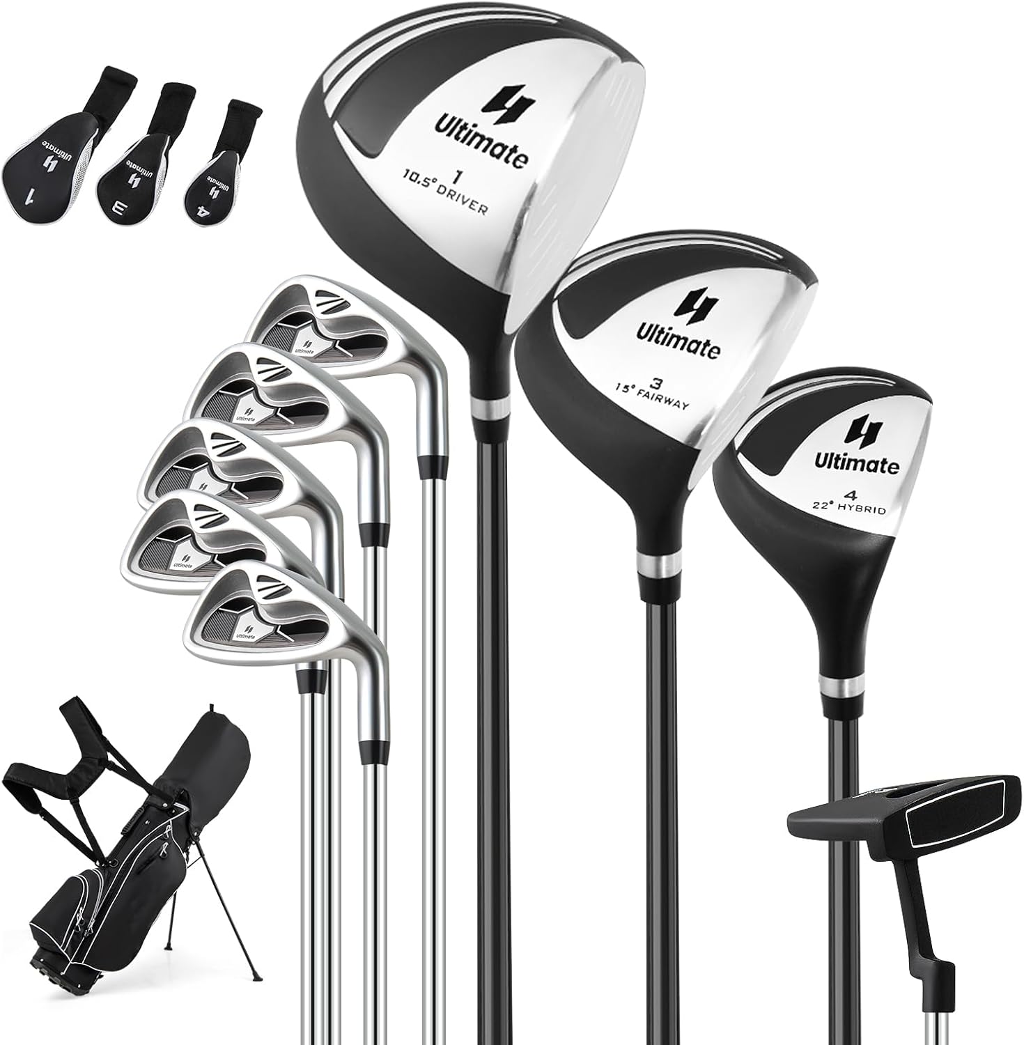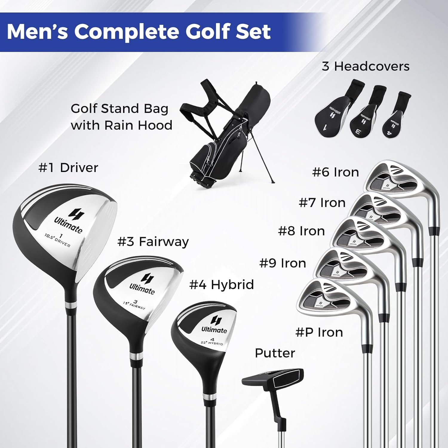 ✔COMPLETE GOLF CLUBS SET- Our golf club sets are perfect for golfers and beginners and come with aluminium driver, 3# fairway wood, 4# hybrid, 6#-9# irons, pitching wedge, precise putter and the stand bag, bring you a pleasant golf experience.