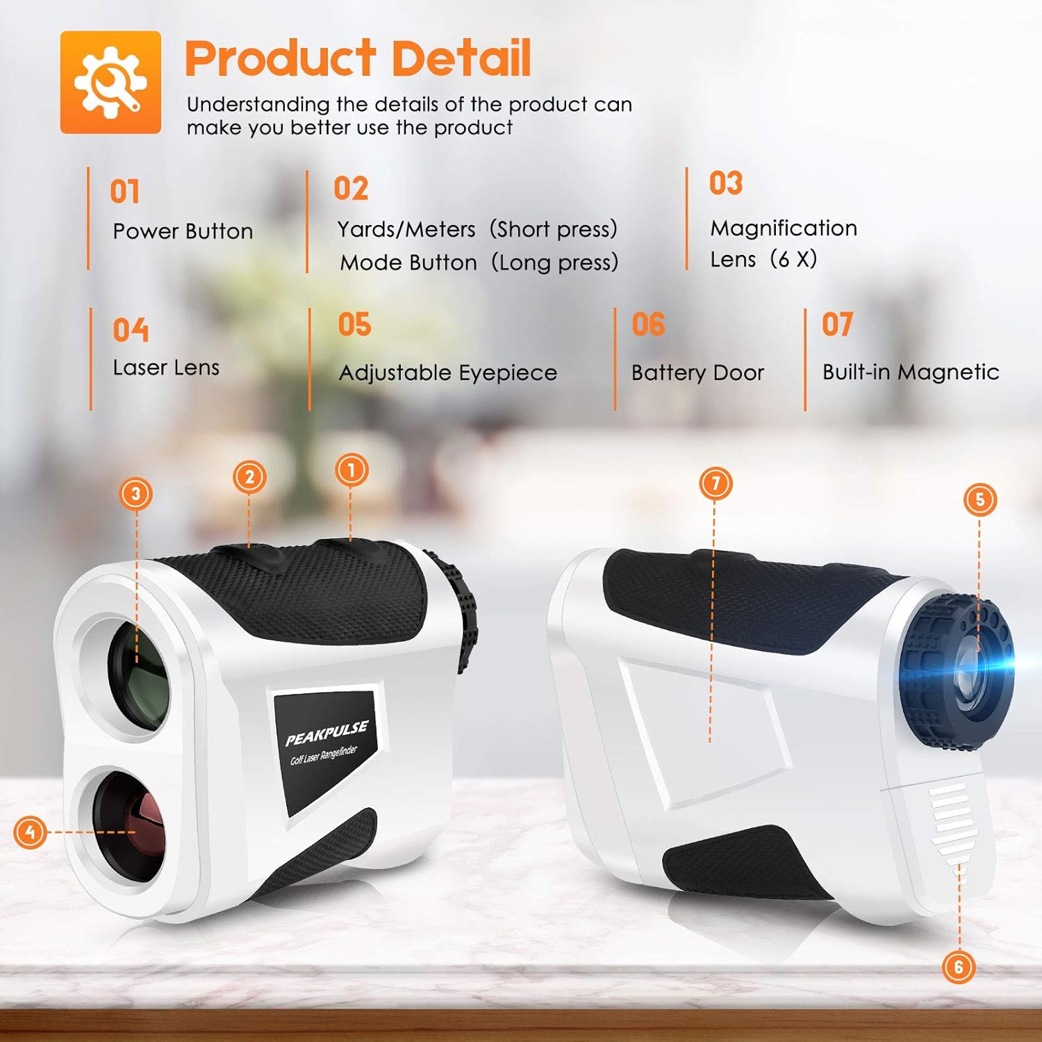 [Portable & Durable]: The battery lasts about 5000 measurements, and the rangefinder automatically turns off after 8 seconds of inactivity to increase battery life.Built-in magnet can easily hang the rangefinder on the golf cart.