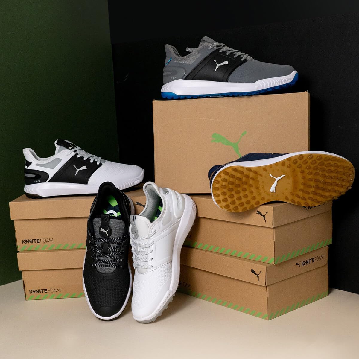 Time to raise your game. With ludicrous comfort and considered style, the IGNITE ELEVATE gives you everything you need to step onto the course with confidence – wherever your tee takes you. The IGNITEFOAM PU foam provides energy return, responsive comfort and superior step-in comfort. Grip the ground no matter the lie – built for strength and stability, the ELEVATE boasts PWRFRAME and PWRCAGE technology to follow you throughout your entire swing in effortless comfort.